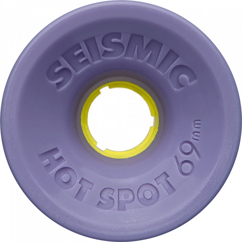 Seismic Hot Spot 69mm Wheels. Ideal for freeride and technical downhill longboarding. This Downhill free-ride wheel has an offset core, square outside edge, straight cut inside edge and 50mm running surface. Available in the defcon formula. developed for speed and holding the guinness world record for speed. Great directional slide, long lasting grip and slow consistent wear. Good for general cruising and perfect for freeride, downhill or slalom boarding.