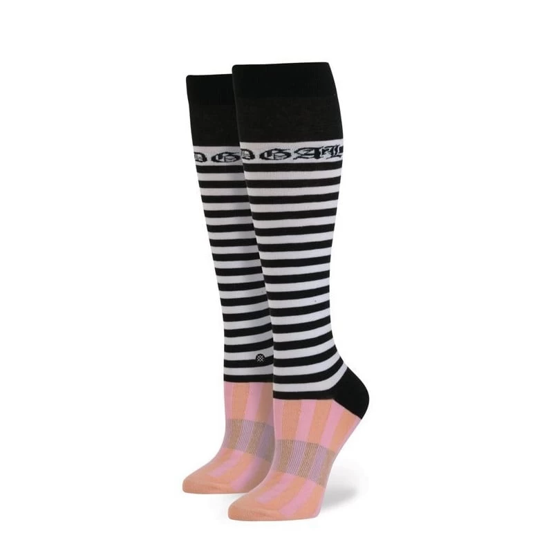 with seven albums in as many years and no shortage of surprises up her sleeves, rihanna always keeps us craving more of her fierce originality. get a taste of music’s original bad gal with stance’s candy bars, a collaborative tall boot sock style inspired by the sweet beats and naughty lyrics of a muse who knows what it means to call the shots. buttery soft combed cotton fibers are blended together with elevated design details-like deep heel pockets and a band of springy elastic arch support-for a sock that hits all the right notes. perfect for pulling up over the edge of your favorite boots, these high risers come in a sugary pastel shade of pink and bold black stripes that capture ri ri’s signature baby-punk goth style. with stance’s candy bars, it’s always good to bite off more than you can chew.